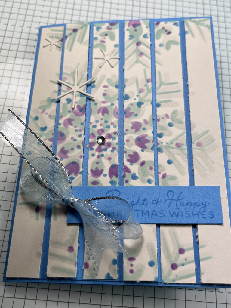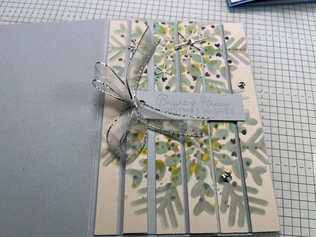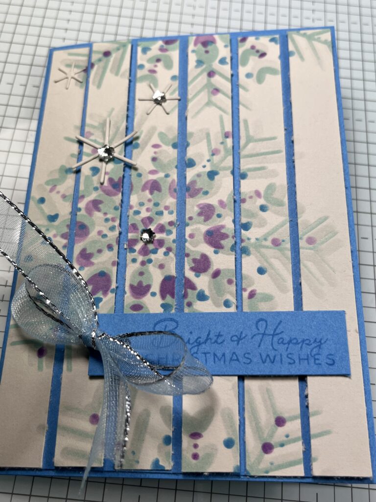 Grundkarte: 14,85 x 21 cm falzen bei 10,5 cm Aufleger: 14.4 x 10 cm in Wolkenmeer, Basic Beige Aufleger 8,5 x 14.4 cm, Innenaufleger 14,4 x 10 cm, Stanzformen / Stempelset Jolly Holly