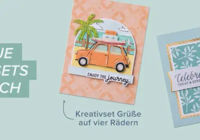 Hinweis: In der Anleitung zum Kreativset wird eventuell fälschlicherweise angeben, dass ein Stampin’ Spot in Granit im Lieferumfang enthalten sei. Die korrekte Farbe ist, wie hier abgebildet, Lagunenblau. Dieser Stampin’ Spot ist in allen Kreativsets enthalten.