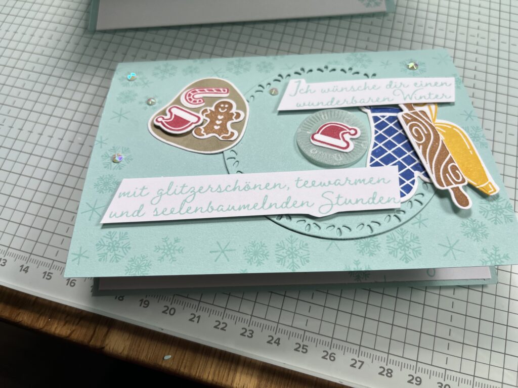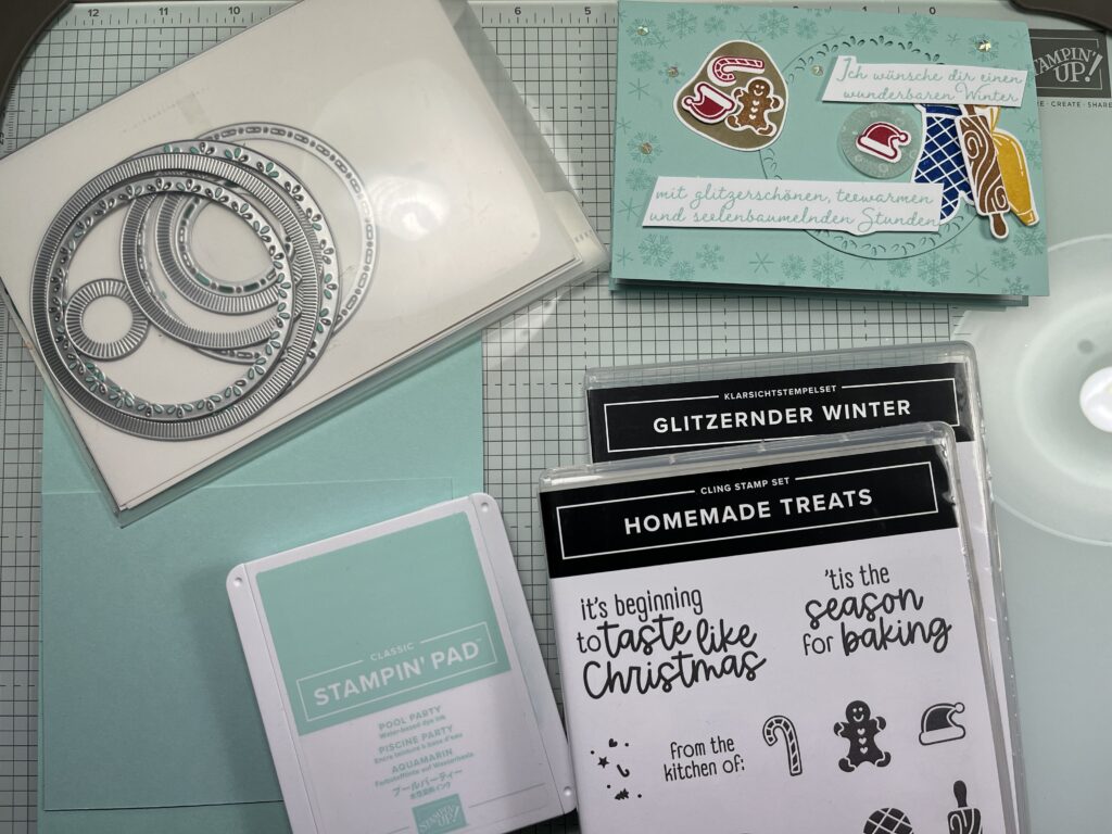 Ho ho ho ihr Lieben, ein paar Karten für Weihnachten möchte ich euch ab jetzt zeigen. Das erste ist eine Plätzchen Karte mit dem Stempelset Homemade treats. Das ist bei den Online Exklusiven Produkten im Monat Juli erschienen.