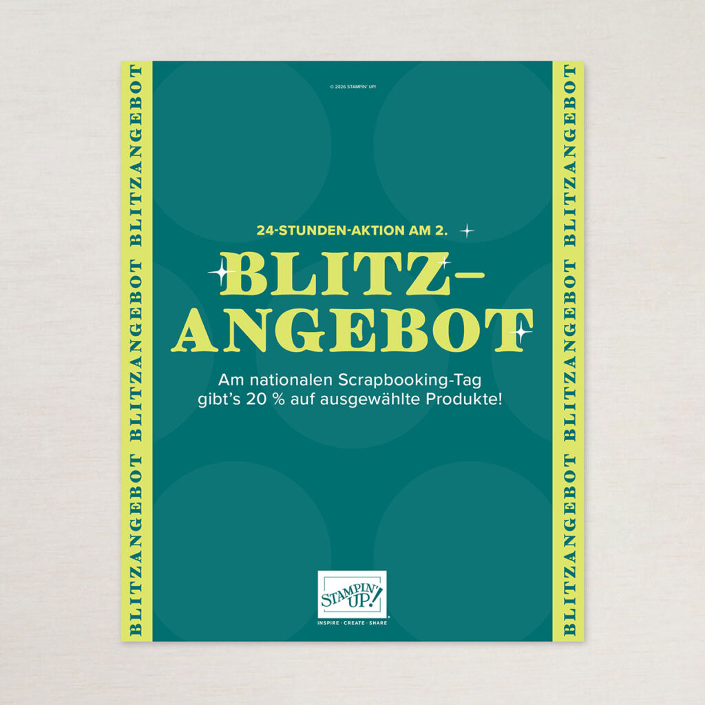 In jedem Fall ist jetzt der ideale Zeitpunkt zum Shoppen! Diese Aktion dauert nur 24 Stunden. Informieren Sie also Ihre Kreativfans rechtzeitig und animieren Sie sie zum Zugreifen!