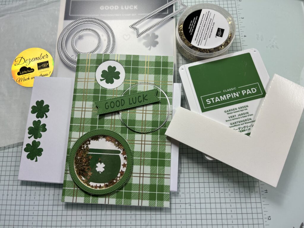 Das Gartengrün hat mich inspiriert, zum neuen Stempelset „Good Luck“. Ich hatte ja zum Jahresschluss ein vierblättriges Kleeblatt aus Origami gefaltet und das passt super zu meiner neuesten Kreation.