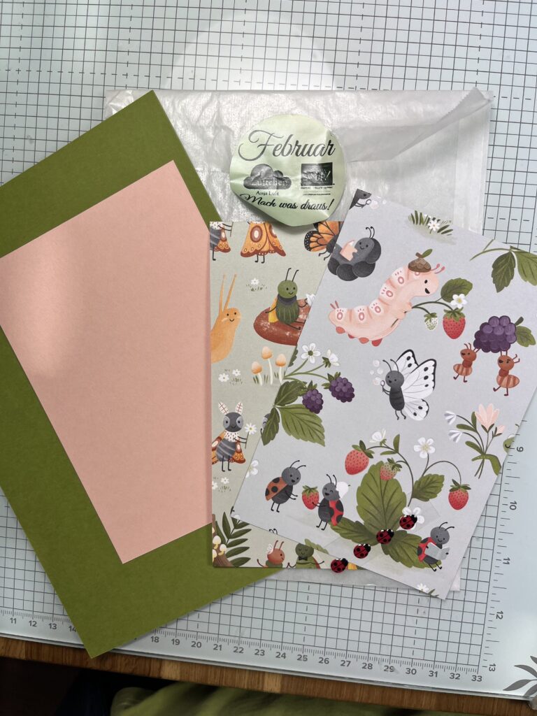 Anja Luft hat die Reihe „Mach was draus!“ ins Leben gerufen. Jeden Monat bekommt man ein kleines Tütchen mit Material, das verbastelt werden muss. Jeweils am 2. des kommenden Monats um 19.00 Uhr werden dann alle Kunstwerke über den Blog per Bild gezeigt. Also schaut gerne auf https://www.lueftchen.de vorbei. Andere Demonstatoren, wie ich, können sich, seit neuesten, 3 x im Jahr Kartons zusenden lassen; zu einem kleinen Kostenbeitrag. Darin sind dann enthalten 4 Monatstüten + Grundmaterial (z.B. Farbkarton + beidseitiges Klebeband)