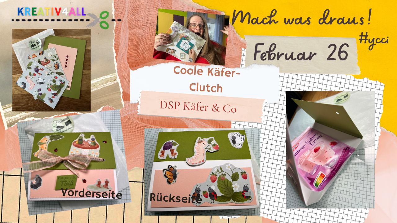 Käfer-Clutch ! Hallo ihr Lieben, heute habe ich für die Reihe „Mach was draus!“ eine Clutch, kleine Tasche gestaltet.