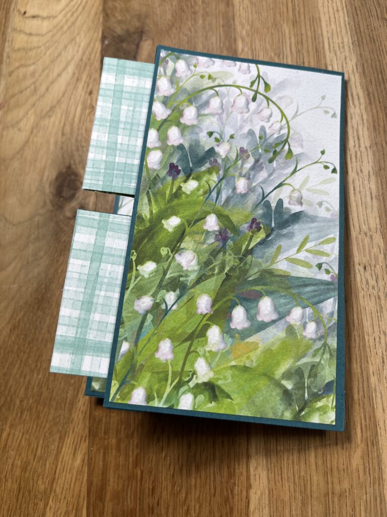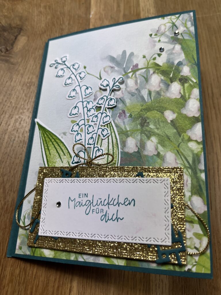Danach benötigt man nur noch DSP in meinem Falll das neueste aus unserem neuen Minikatalog von Mai bis August „Im Maiglöckchental“ 14,4 x 10 cm; 14,4 x 8,5 cm; 14,4 x 6,3 cm; 14,4 x 8 cm; (2x) 6 x 8 cm und (2x) 6 x 7 cm