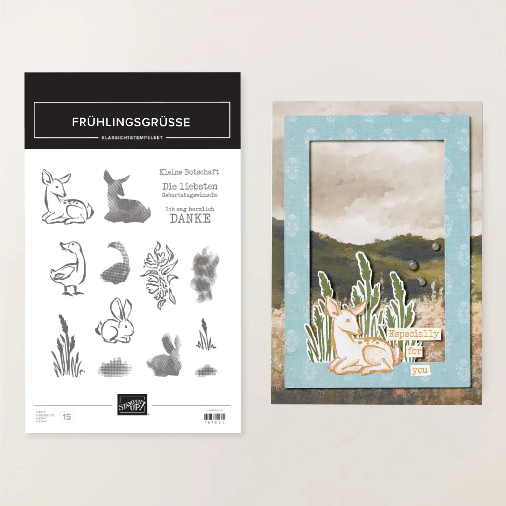 Kreieren Sie mit diesem Stempelset bezaubernde Karten für liebe Menschen! Oder gestalten Sie damit eine Scrapbook-Seite zu einem schönen Moment in der Natur. In jedem Fall bietet Ihnen dieses Stempelset tolle Motive voller Wald- und Wiesenflair sowie immer nützliche Grüße, mit denen Ihre Projekte für Frühlingsfreude sorgen!