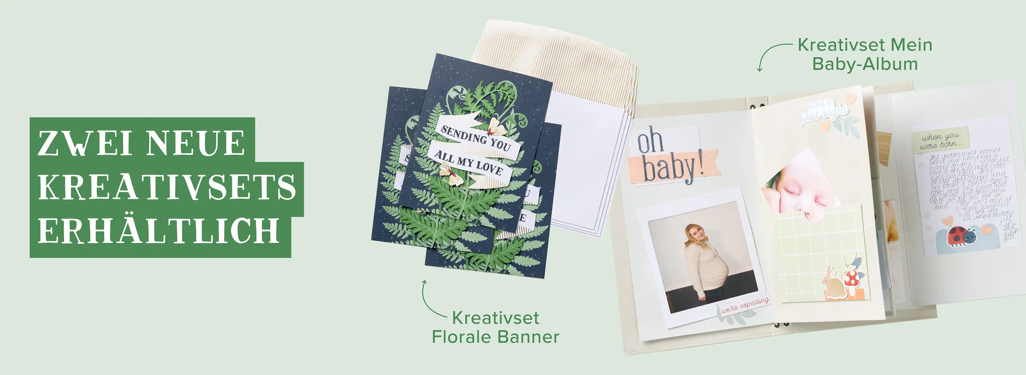 Zeigen Sie anderen Ihre Zuneigung durch handgefertigte Karten mit dem Kreativset Florale Banner: Jedes Kartendesign besticht mit einem einzigartigen botanischen Motiv und einem herzlichen Gruß auf einem Banner.
